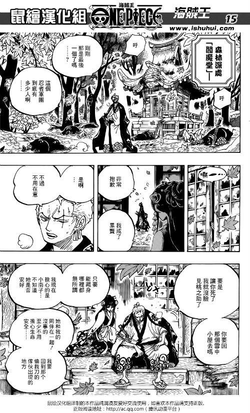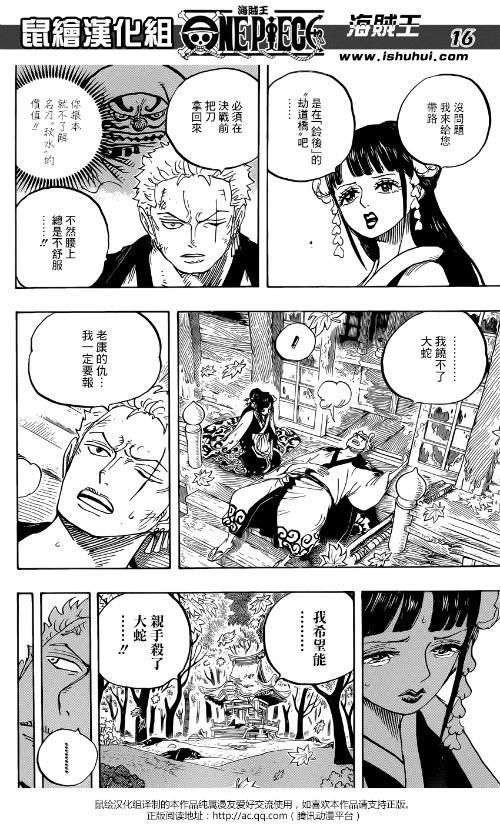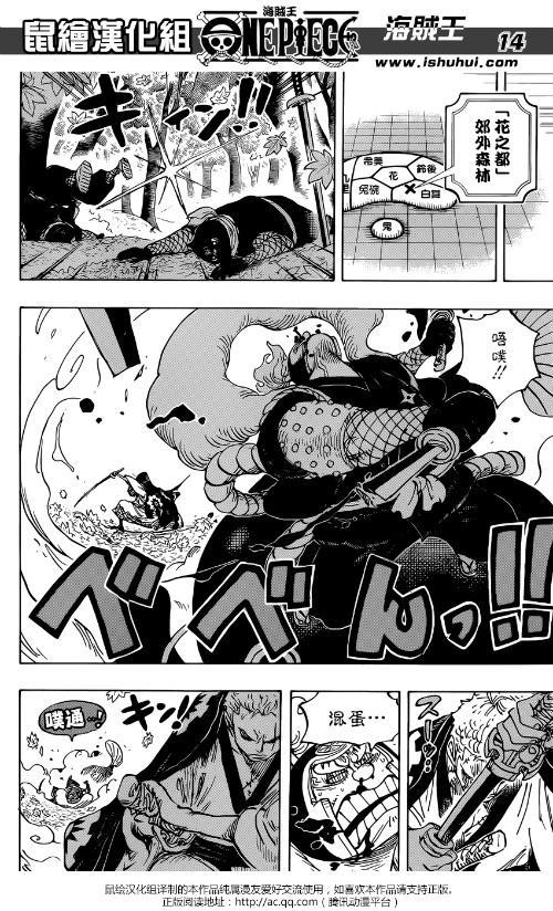 到了花之都,山治又遇到了德雷克做对手,结果二人的战斗依然是一带而过,并且完全不交代结果,本话中我们看到德雷克与霍金斯商讨关于罗的事,而他与山治的战斗过程和结果都和之前的PGONE一样没交代,虽然下一话中我们可能会看到山治娜美等人,但他与德雷克的战斗细节恐怕尾田是不打算告诉读者了,毕竟这场战斗已经结束了。