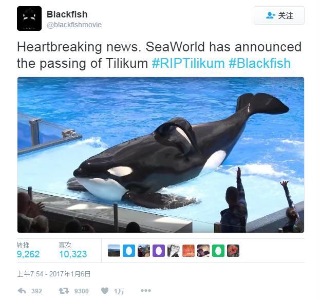 网友们悲痛地说,“ Tilikum 终于获得了自由”。