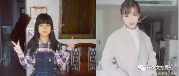 还有鼻子,这样对比看很明显,原来的鼻头是趴着的,现在正面不露鼻孔,鼻尖也高了,所以应该是做了耳软骨等垫鼻尖、鼻中隔延长,山根不知道是不是化妆的原因,也比以前高。