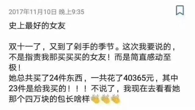 大家都在双十一吐槽自己的女朋友乱花钱买这买那,吐槽她不理智,指责她买的没用,年年又要换很多很多衣服,去年买的还能穿就已经被她压箱底了。