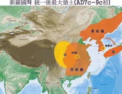 唐朝时期,新罗又占据了上风,灭掉其他两国,统一了朝鲜,顺便揍了下小弟倭,结果不小心分裂成了东西两部分。