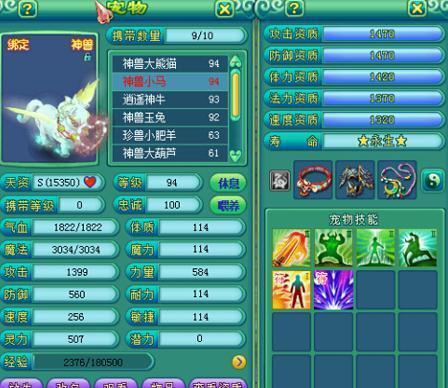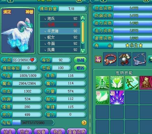 神兽小马技能自带高级必杀和高级追击,而1号位慧根和高级冲击则并没亮点,虽然说神兽小马的技能并没那么的出色,也是需要打书跟进。但是有一点,神兽小马的双饰品十分养眼,天马行空的感觉顿时就出来了,有翅膀的小马简直就是帅翻天了。