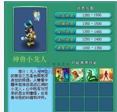 作为身高最矮的神兽,小龙人自带善恶技能和高级勇敢,两个技能也是比较高端使用,而高敏捷则是有总比没有好,最令人讨厌的则莫过于是第几的慧根,许多人打书都跪在了这个小小的一号位慧根之上,神兽小龙人虽然小个,但是它也有其魅力之处,小巧可爱就是它的最强卖点,而且施法和攻击动作也是十分亮眼。