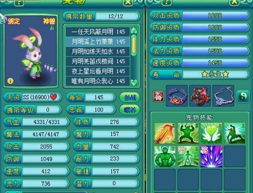 自带高级连击,还有高敏捷高审判和小感知,两大克制技能全有,然而玉兔的攻击动作实在是太慢了,还有停顿,相反它的施法动作则是非常漂亮,但是上剑气又浪费了他的高级连击,实在让人纠结。