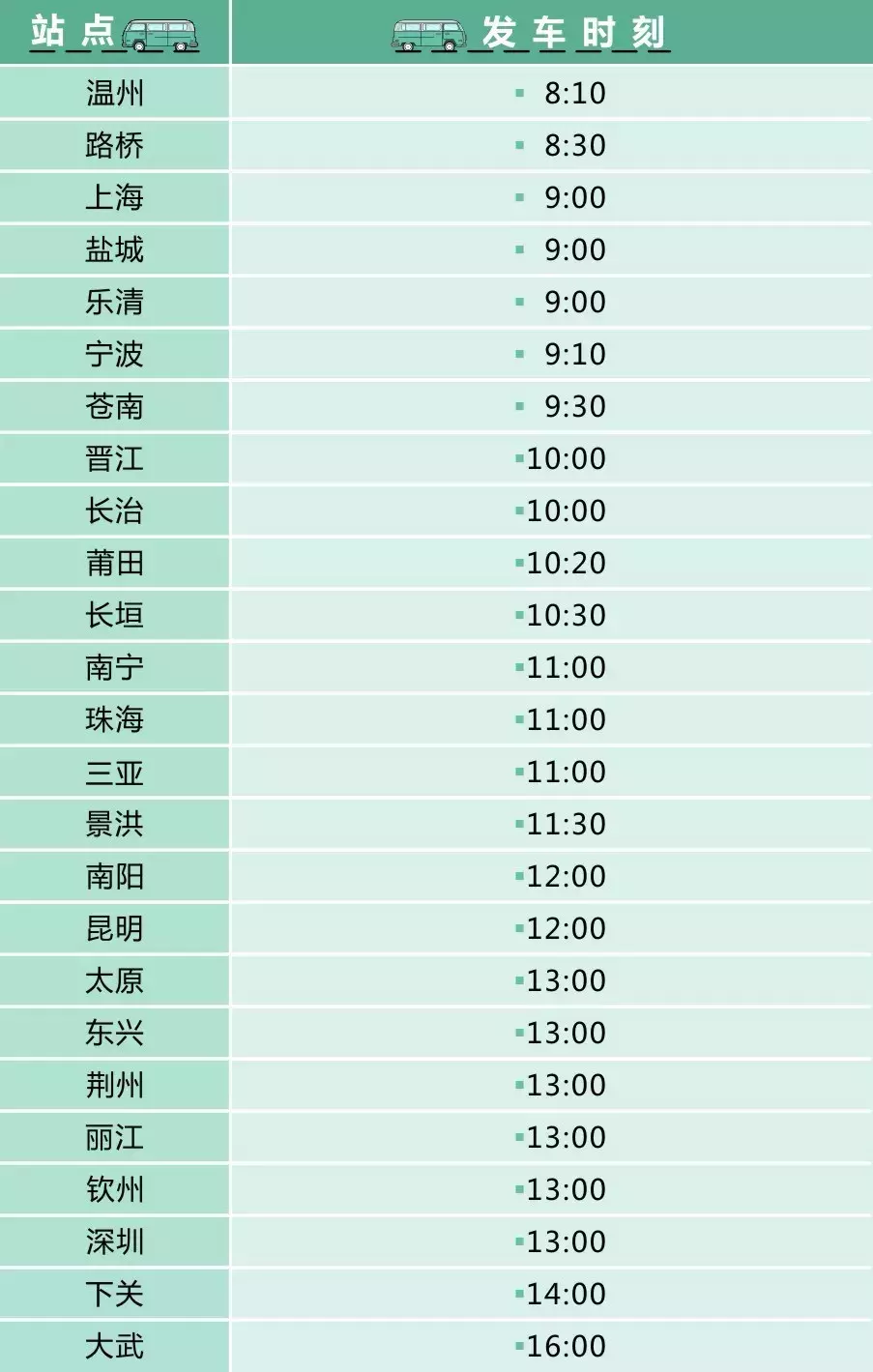最全最新的客运班次时刻表,你一定用得着,快分享给你身边的人吧~