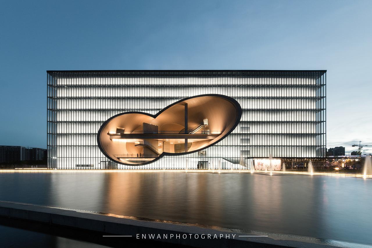 保利大剧院是安藤忠雄在上海的作品,剧院坐落于上海市嘉定区嘉定新城,毗邻上海国际赛车场,是上海地区标志性文化设施之一,也是国内首家拥有水景剧场的剧院。总建筑面积达5.6万平方米,总投资约7亿元。剧院能满足舞剧、歌剧、话剧、交响音乐会、戏曲及综艺汇演等演出使用要求,其建声效果达到建筑声学和舞台设备功能配置的国内顶级水准。其施工的高完成度保证了该建筑最终得以高品质的呈现,白天它就像一个装满许多秘密的玉石静搁在远香湖一畔,晚上它则成了一个玲珑剔透的水晶盒子,漂浮于广阔的水面之上,与自己的倒影安静地对话。
