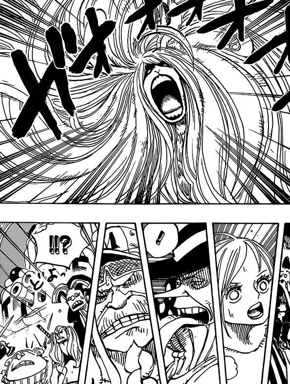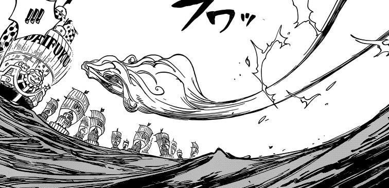 剧情回到上一话中,大妈率家族海贼团穷追不舍,路飞遭遇卡二最大威胁,而甚平、娜美、乔巴等在桑尼号上苦苦支撑。