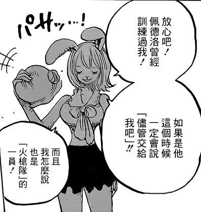 在之前篇章中,加洛特成功地吸引了一批喜欢兔耳的漫迷。一直以来温顺可爱的加洛特(没错,就是那个粉红色的小兔子)一直在船上,但戏份比较少。最新一期《海贼王》888话加洛特爆发,形象完全翻转。