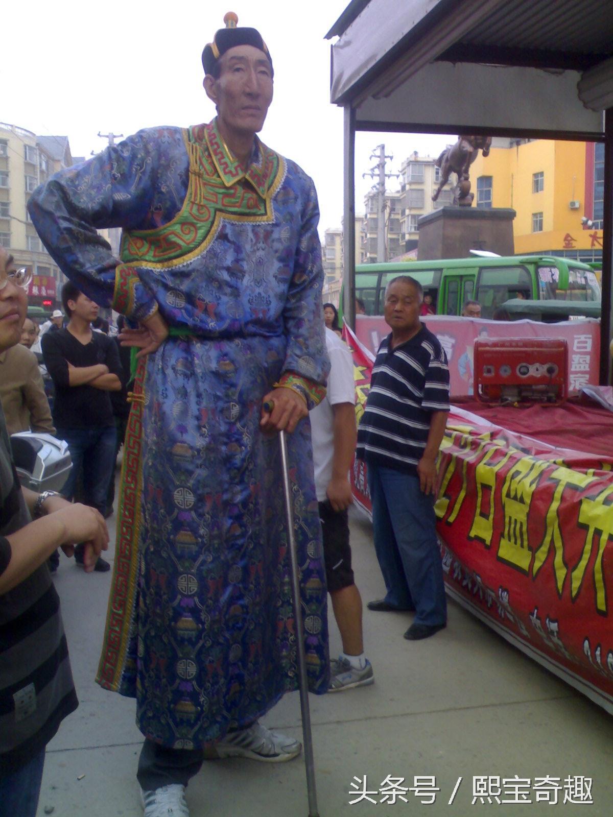 鲍喜顺,1951年出生,内蒙古赤峰市人。他的手掌大如蒲扇,脚长38厘米,宽12厘米,做一身衣服要五米布,是一般人需要布料的两倍。据了解,巨人鲍喜顺身高2.36米,喜顺是当之无愧的中国一号的牧民。2005年拿到了由吉尼斯世界纪录总部颁发给他的“世界自然生长第一高人吉尼斯世界纪录证书”。