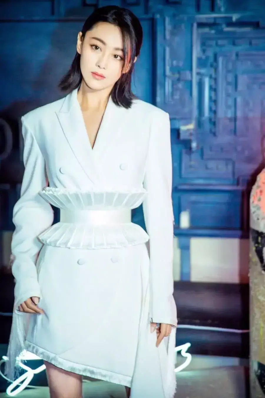 而白色西装造型除了英气更多了一丝女人味。纯白的颜色和裙装的设计,在腰带处花尽心机,时髦又凸显小蛮腰。配上短发,都是最帅气的“女汉子”。