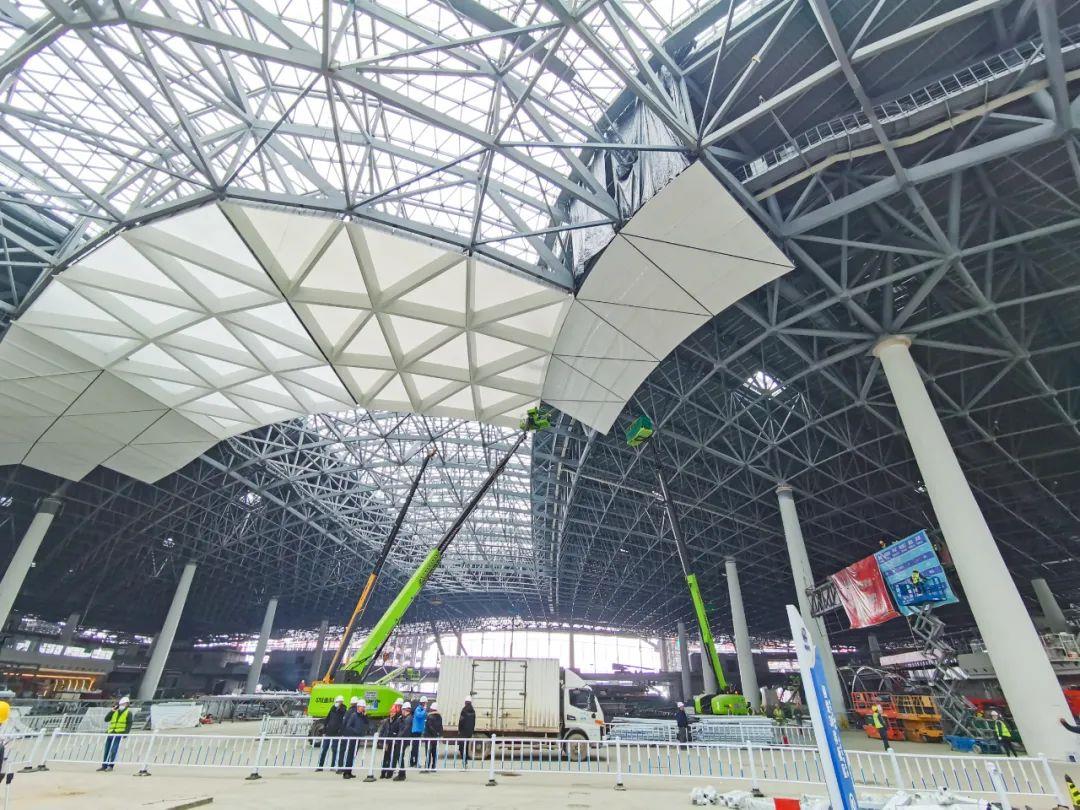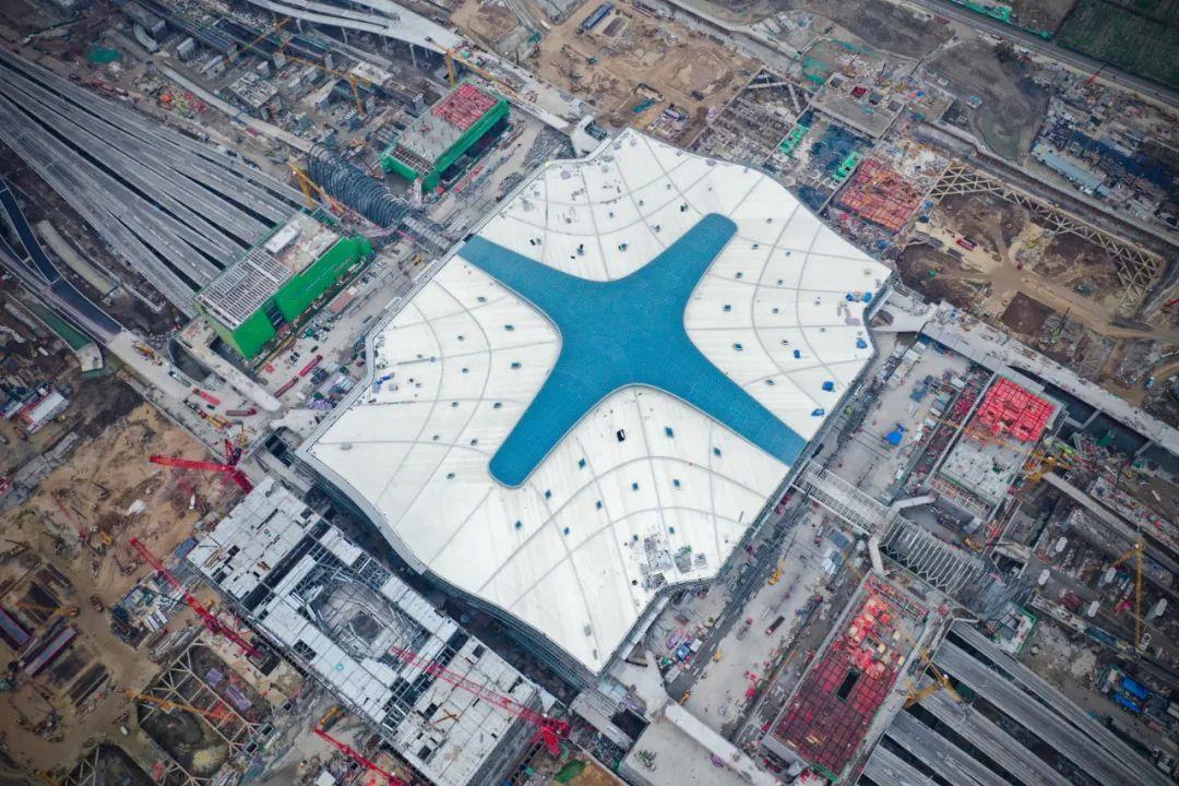 站房屋面工程施工已基本完成,正进行立面幕墙施工。屋面还将进行太阳能光伏设备安装,充分利用太阳能发电,打造低碳环保的绿色高铁车站。图源:长三角铁路