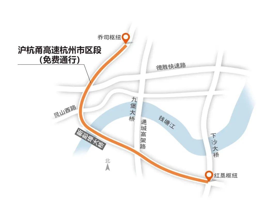 乔司收费站至钱塘江新建大桥段包括了沪杭甬高速杭州市区段在钱塘江北岸的路段和钱塘江新建大桥,也就是新彭埠大桥。这一路段目前进度相对较快,已具备通车条件的乔司收费站至德胜枢纽段高架桥就属于这一路段。