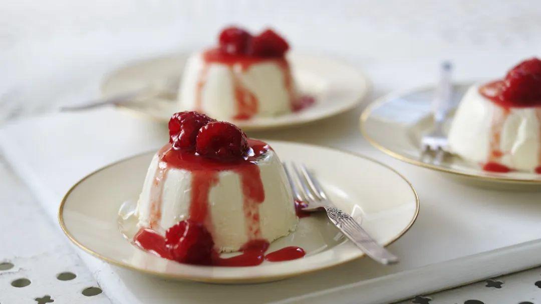 Panna cotta – 一种奶油甜点,通常配上红莓果酱。