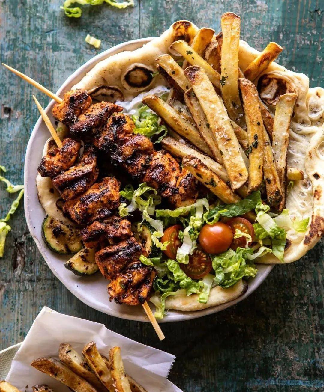 Souvlaki – 在希腊语中是“小串”的意思:基本上就是腌过的小块猪肉,在烤架上烤。