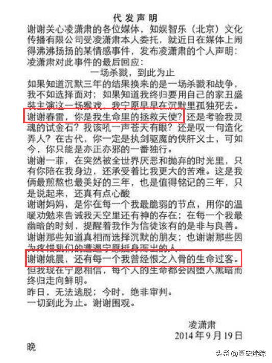 凌潇肃发表声明,这段感情已经死了。