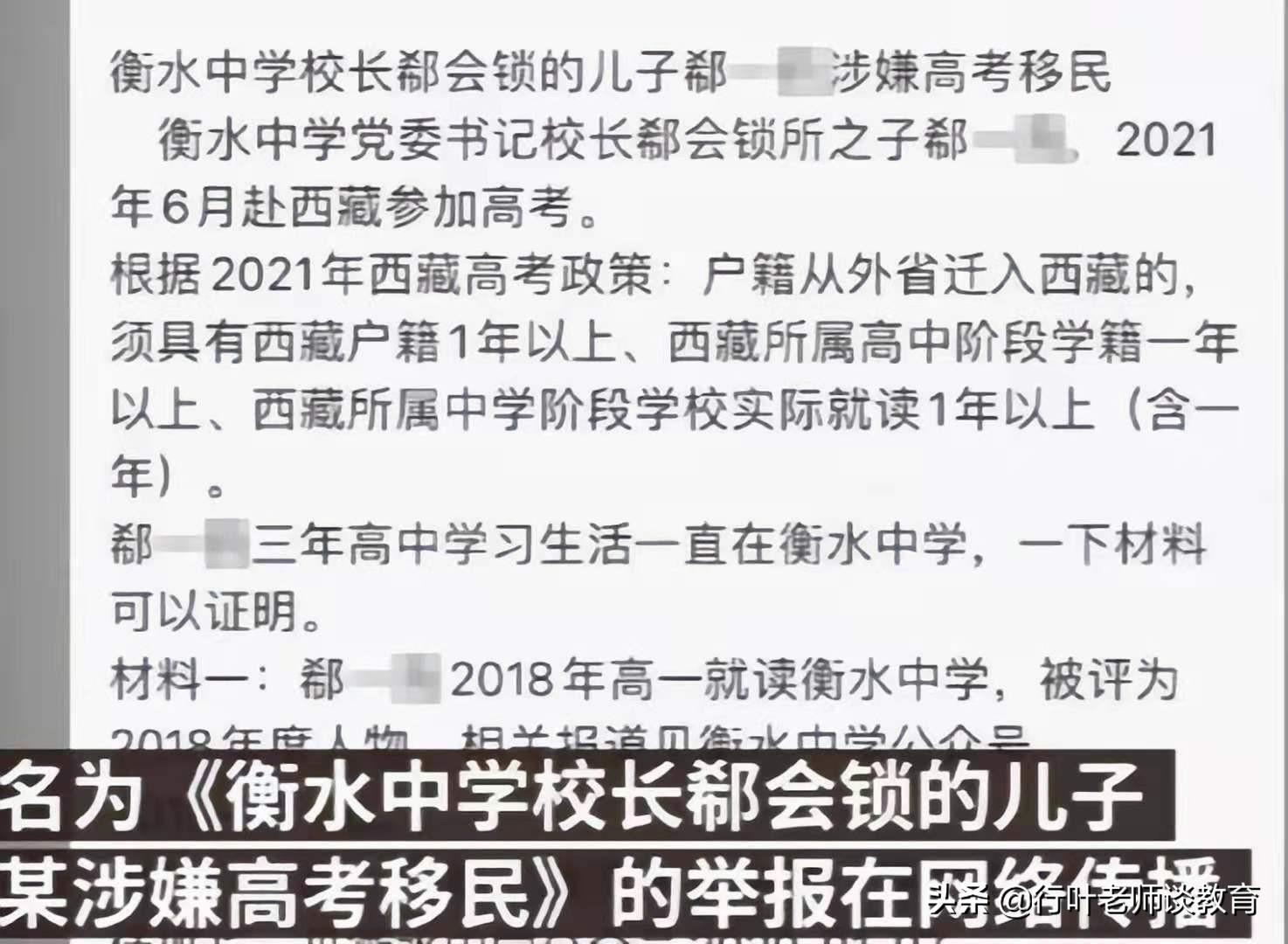 之所以会出现这种情况,是因为衡水中学校长作为一所超级中学的掌舵者,居然想要钻政策的空子,将自己的儿子“移民”西藏参加高考。
