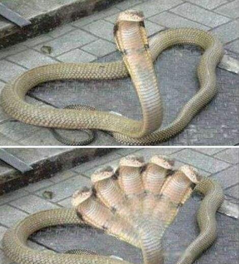 所以我们不妨很显著的得出论断,这条所谓的五头蛇千万于是假的,是某部分的PS大作,随意懂点PS的伙伴都该当不妨P出如许的效验。所以干出个十头蛇以至百头蛇都是不涓滴压力的。然而双头蛇是果然存在的,那是蛇的常睹变异局面,然而于今也只创造过二个头的个别。