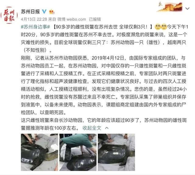中国最后一只雌斑鳖走了,还好神兽朋友都在