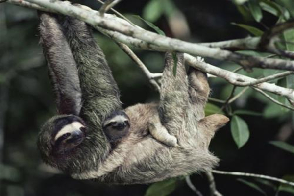 褐喉树懒像其名字一般,果然十分懒。假如这棵树上的食物够用,那么会停顿在一个场合不动,假如这棵树上的食物不足,那么才会挪动到另一棵树上,在挪动的时间,速度会十分的缓缓,因为其爪子的形状无法在大地上万古间的站立,便像是不会步行一般。