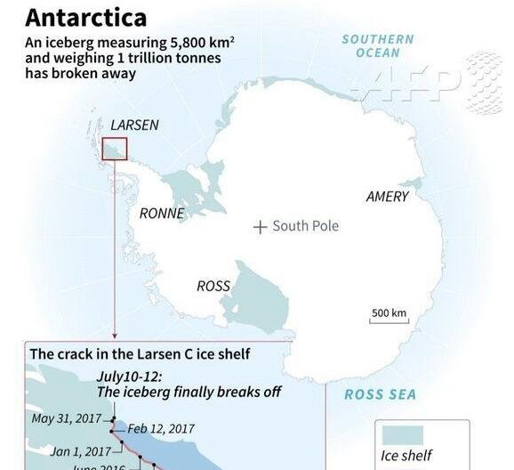 史上最大冰山崩离,面积达6000平方公里_相称于所有上海