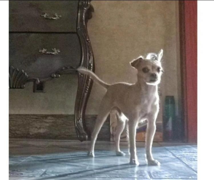 看起来很像是吉娃娃和中华田园犬的混血。