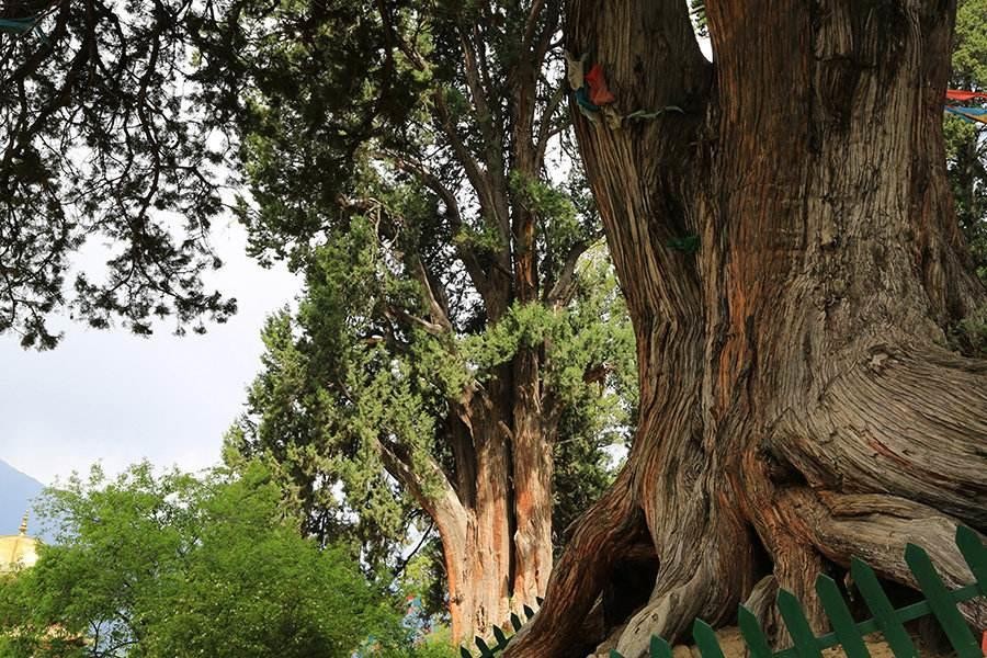 有“世界巨柏王”之称巨柏林,位于西藏雅鲁藏布江和尼洋河下游海拔3000米一3400米的沿江河谷里。在古柏林中央有一株十几人都不能环抱的巨柏,它高达50多米,直径近6米,树冠投影面积达一亩有余。经测算,这株巨柏的年龄已有2000-2500年之久,被当地人以“神树”之尊加以保护。林芝县古柏林在当地藏族群众心目中是圣地,传说苯教开山祖师辛饶米保的生命树即是古柏,树林中还到处是玛尼堆,