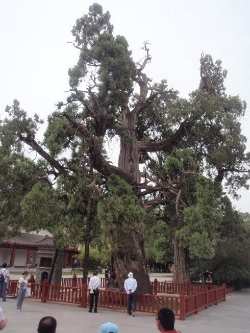 “二将军柏”树高20米,树干粗12.54米,树身已空,可容数人。民间传说,是因为柏树受封时,汉武帝首先看到一株大柏树,便封为“大将军”,而又看到了更大的一棵,但天子金口玉言,不能更改,只好让大的屈居第二,今大将军柏半伏于石墙之上,二将军柏树干中裂。