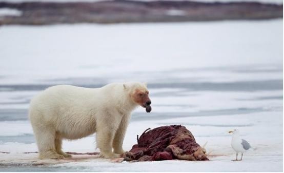 而北极熊的主要食物来源是海豹。它们是实打实的食肉动物。如果食物充足,它们只吃海豹的脂肪。这种高热量的食物,帮助北极熊储存脂肪。保持健康,维持体温。如果捕猎海豹不顺利,北极熊也会吃任何它们能找到的东西,比如鱼、蛋、和驯鹿等。北极熊倾向于独居生活,除了交配时,抚养幼崽的母熊组成一个家庭群体。