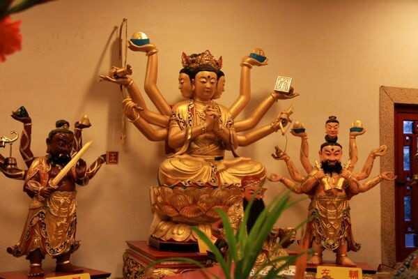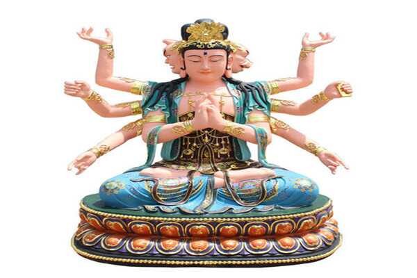 斗姆元君的形象通常以道观中侍奉的三眼、四头、八手的斗姥为准。具体来讲,斗姆元君的额头上生有三只眼睛,肩膀上生有四个头颅,八只纤细的手各持有造型迥异的法器。这种法相造型在道教中也是极为罕见的,体现出了斗姆元君身为九星之母的与众不同之处,因为斗姆元君化生的九皇道体是北斗九辰星君。