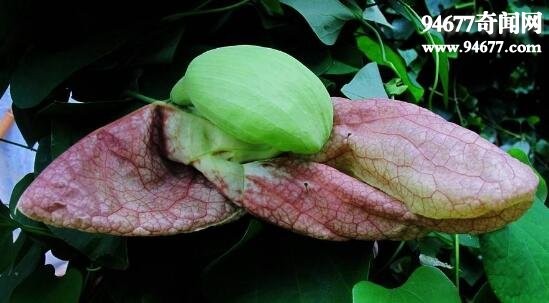 巨花马兜铃学名为“Aristolochia grandiflora”。这种植物的奇特之处在于它们美丽而怪异的花朵。花朵的主要部分只有一片,看起来好象是一个巨大的、带有纹理的兜状物,而不像普通的花朵那样拥有对称的花瓣。观赏者千万不要太靠近它,否则它所发出的死老鼠味道会在你们身边数小时不散。不过,巨花马兜铃虽然会发出死老鼠味道,但它们并不像巨型猪笼草那样吃老鼠,它们这种气味不过是用来吸引传粉昆虫帮助它们传粉而已。