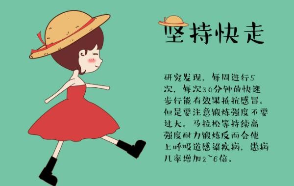 7、每周进行5次快走,每次30分钟,这样可以有效的抵抗感冒。