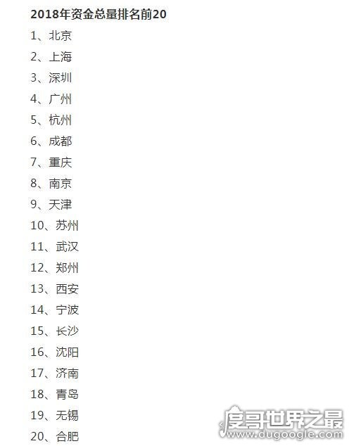 杭州、成都和重庆的总资金量都超过了3.5亿元,分别位于第5、第6、第7名,排名也在全国领先位置,接着就是南京、天津和苏州了,在这些城市里面,除了深圳以外,全部都是省会城市,在经济发展方面本来就占据优势,名次靠前也是理所当然的事情。