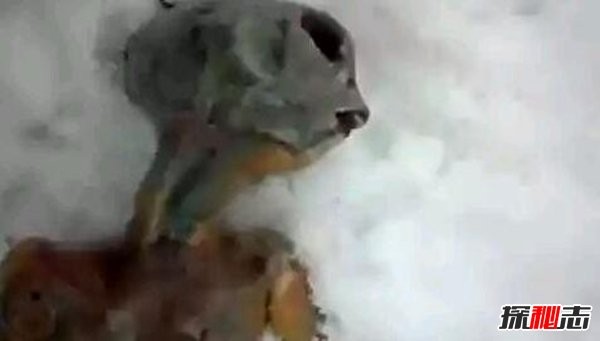 俄罗斯两个年轻人在2011年发布了一段视频,在视频中可以看到冰冻的外星人尸体。当时引发了震动,但是警方顺藤摸瓜找到年轻人的时候,他们透露这是恶搞视频而已,“外星人”是用玩偶制作的。