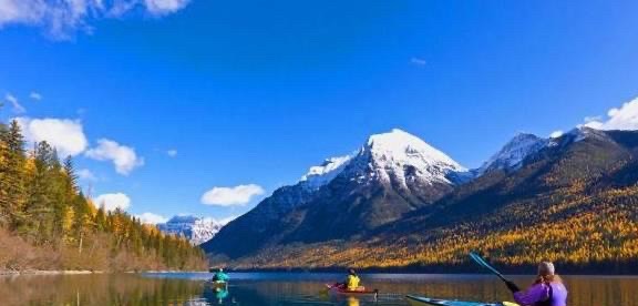 弗拉特黑德湖位于美国蒙大拿州,这是一座巨大的湖泊,光是长度就达到了40千米,宽度则有两万多米,水体总面积达到了496平方公里,已知的最深水区深度超过110米,如果要到这里钓鱼还得准备足够的鱼线哟。因为水质清澈,哪怕你在上面泛舟,都能看到水底的舟影,如果不是湖面在波动,别人简直以为你是坐在一块蓝色玻璃上。