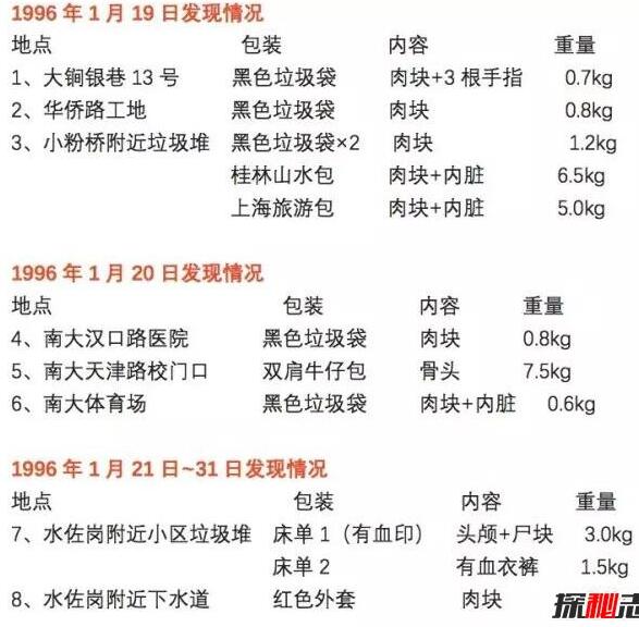1996年1月19日清朝,在南京大学南方,靠拢南京市核心新街口的一条弄堂里,一位驱除大街的大妈在废物桶里拾到一包由乌塑料袋包裹的碎肉块,其时她认为是猪肉,遂戴回家荡涤,截止在袋内创造3根手指状物,立即报警,警方闭于该地区举行精致排查,创造若搞袋包尸块,并确认尸身的身份是丢失9天的南大弟子刁爱青。这即是闻名的南大“1.19”碎尸案。
