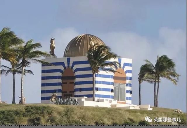 Epstein购下小岛后大兴土木,扫除了一局部植物,种起了高高的棕榈树,