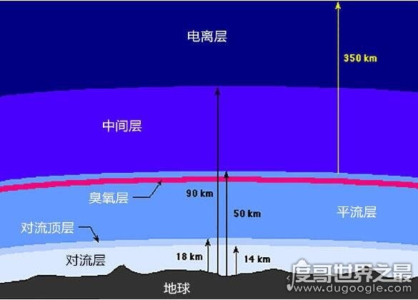 整个大气层圈,不同的高度都有不同的特点,所以一般将大气层分为对流层、平流层、臭氧层、中间层、热层和散逸层。对流层位于大气的最低层,平均厚度约为12公里,不同地方的厚度也不一样。平流层一般在地表约10~50公里的大气层处。