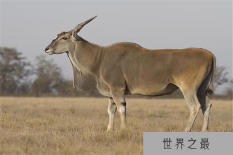 非洲大羚羊,它是所有羚羊中的最大种类,其头上的角看上去有点旋转,因此又叫做非洲旋角大羚羊,也有叫做伊兰羚羊和巨羚羊的。这种大羚羊的肩高可达1.8米,比如我国男性的平均身高还高;其身体的长度在2.8~3.3米之间;体重一般在600公斤,最大的则可达到1吨,这个头和体重比常见的黄牛还要大,比成年人还要高一些,可谓是羊中的巨无霸了。