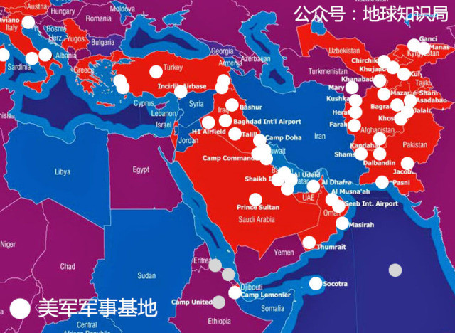 中东因其伟大的火油储量与产量以及相通欧亚非陆地的中枢位子,是现在世界各大国篡夺权利范畴的中心。身为此刻独一的超等大国,美国在中东安置了洪量的部队,期望经过在中东的军事存留,继续地对于中东列国辐射作用力。从上图可大概瞅出,从土耳其到阿富汗(中东的大概范畴)的宽大范畴内遍及美军军事基地。