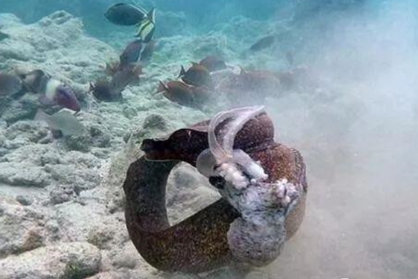 章鱼的天敌是什么?海鳗咬住不松口(咬掉章鱼一条腿)