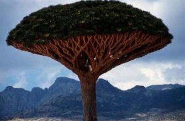 这是一种非常神奇的植物外形,看上去有一些像巨大的蘑菇如果,把它的枝条砍掉之后会流出红色的液体,也是因此而得名。