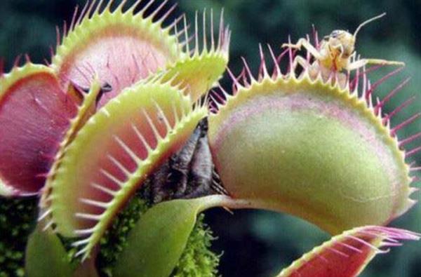 捕蝇草的外观看上去有些吓人。一旦有了小昆虫靠近它,就会张开它的花瓣,把昆虫合起来。慢慢的就会消化掉,变成它的养料。