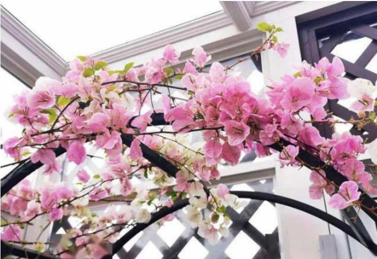 漳州红樱也叫做摆在红樱,花朵,颜色,大多都是粉红色形状,有些像蝴蝶属于勤花品种,一年四季开花,花瓣也是非常漂亮,也是现在比较常见的三角梅品种。