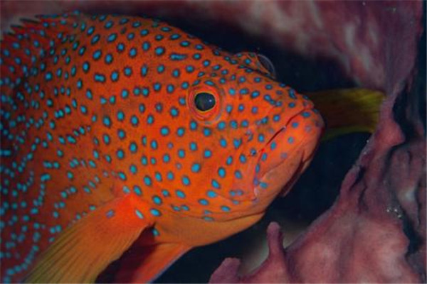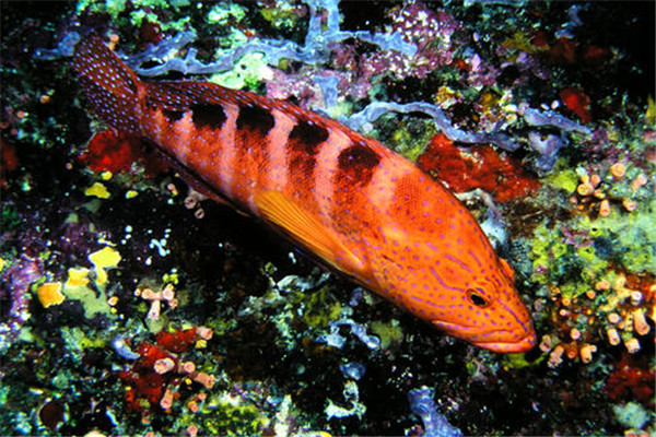 六斑九刺鮨的体长在五十厘米安排,属于中型,普遍脸色多为乌紫色大概者是橙色。然而特殊之处是,它会随没有共的灯光下曲射出没有共脸色,因此也时常被人给认错。然而只消牢记其身上的六条大雀斑,便不妨容易辩别。