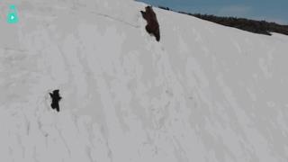 视频中在白茫茫一片雪山上,出现了一前一后两只熊的身影。走在前面的熊妈妈,没费吹灰之力妈妈便登上了山顶。