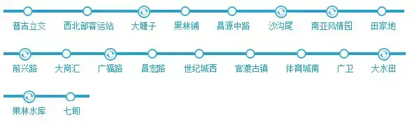 站点换乘大板桥东西快线 / 6号线果林水库7号线昆明南站南北快线 / 1号线支线 / 4号钟贵村南北快线