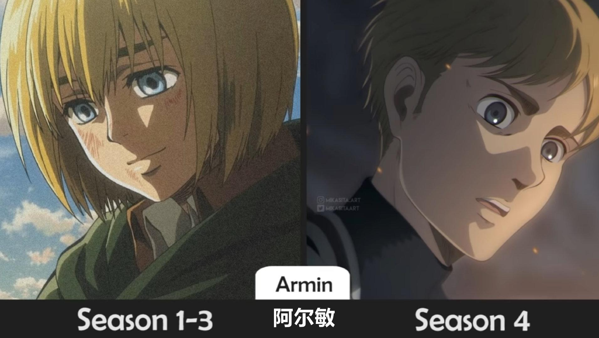 巨人最终季全员形象变化汇总,三笠艾尔敏剪短发,艾伦留长了头发