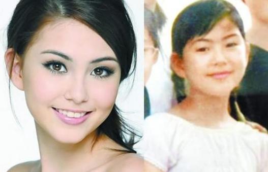 2011年周杰伦老婆昆凌遭媒体她5岁及15岁照片,当时脸圆、鼻塌、眼睛小,与现在大眼、山根宽厚、下巴变尖差别很大,质疑她整容。