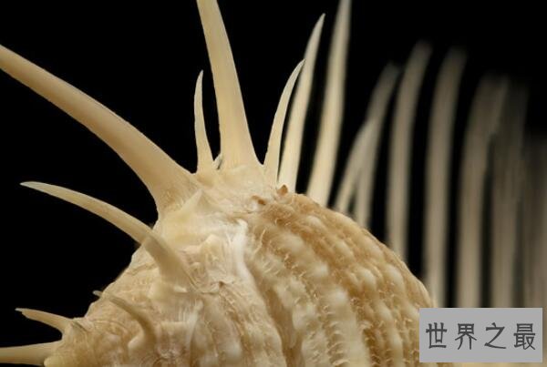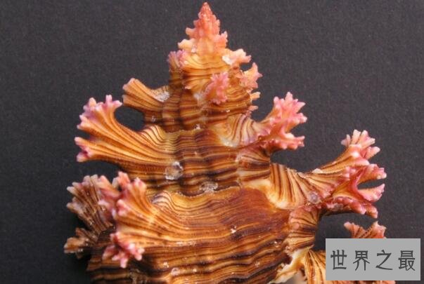 玫瑰千手螺的螺壳上是有着如千手观音般突出的棘刺的贝类,凭借着高螺塔、贝壳表面粗犷的纹路与雕饰而备受人们的喜爱,其中棕色的贝脊和泛着淡淡紫色或粉红色的蕨叶就是这个贝类最大的特点与特色。