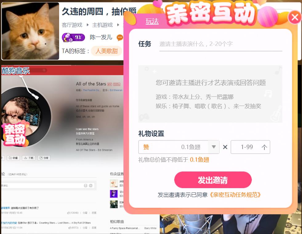 昨天在斗鱼看直播的同学想必都发现了一个新的功能,许多主播也玩这个功能玩的不亦说乎,这个功能就是亲密互动功能。